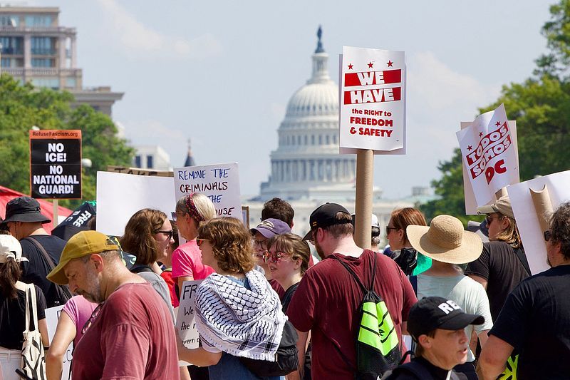 当地时间9月6日,美国华盛顿特区爆发一场数千人参与的大规模游行示威活动,抗议特朗普政府在华盛顿特区部署国民警卫队。游行于当天中午开始,数千名示威者走上华盛顿街头,表达对特朗普政府这一决定的不满。